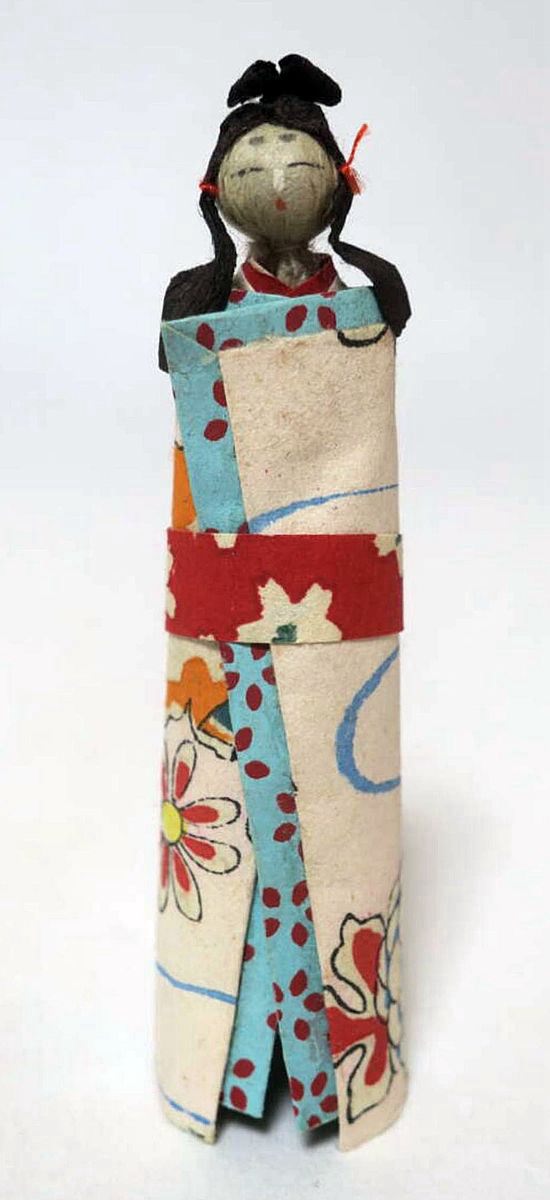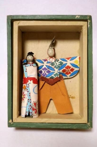 | 物のない時代に自作で贈った紙雛だが、子どものころに菓子箱などで遊んだり、 姉様人形を作ったスキルが生きていると思われる |