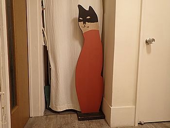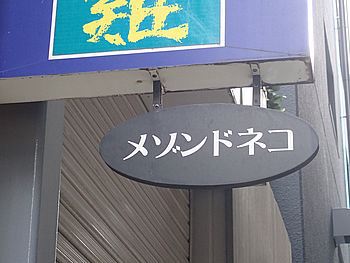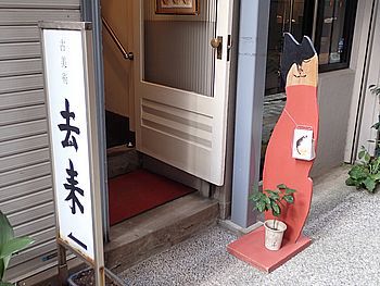 | このビルの2階が会場 | 看板猫がお出迎え |