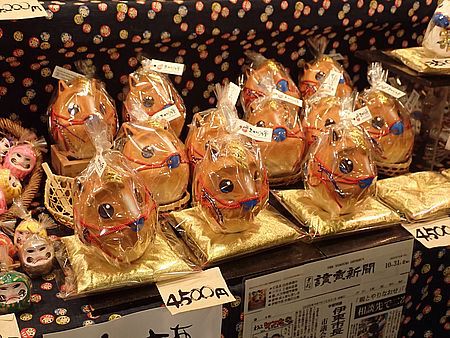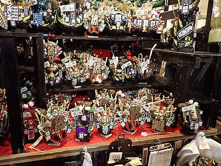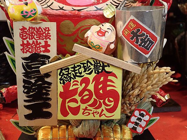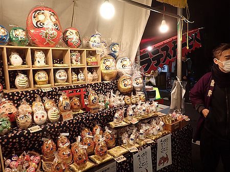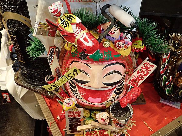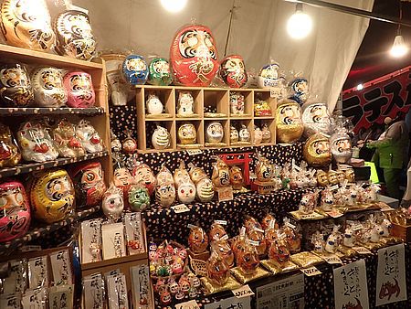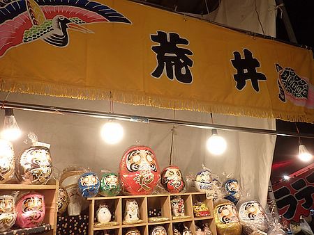 | 今年も酉の市の季節がやってきた 恒例行事でこれに行かないと年が明けない 季節的に寒くなる時期であるので、 今シーズン初めてダウンジャケットで出かけて行った 荒井張り子店は入り口を入ったところにある |