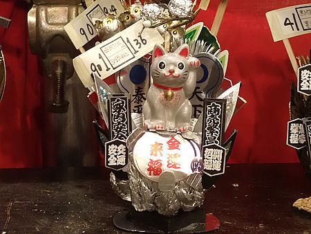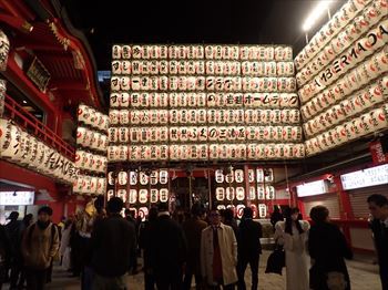浅草6丁目のいつものコインパーキングに駐車して少し離れた鷲神社へ歩いて向かう。せんわ通りに入ると露店が多数並んでいる。少し人出が少なく感じるのは昨年より時間が遅いからか?今年も脇道からショートカットして入る。ここの入り口には張り子店がある。