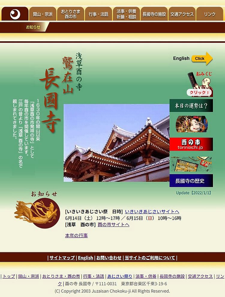 | 酉の市(鷲神社へ) | 長國寺HPへ | 八百代HPへ | 浅草よし田HPへ |