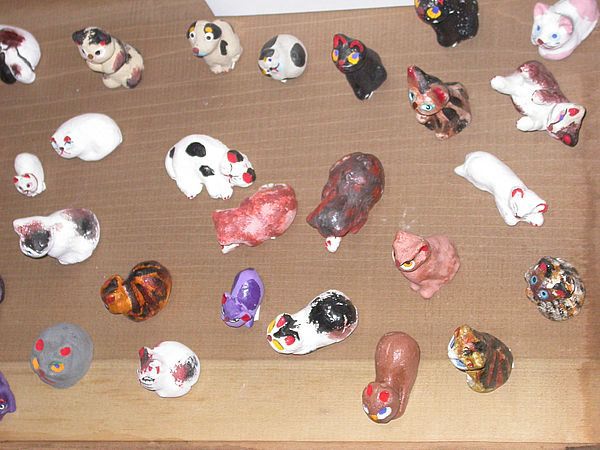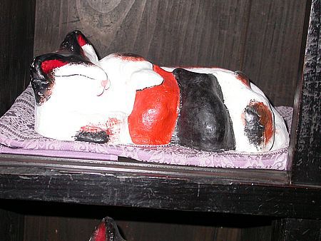 猫の首人形(ネズミが1匹!と思ったら猫だった) 猫の柄や色彩は固定されているようだ |