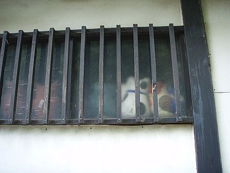 あらかじめ地図で検索しておいたので場所はすぐわかりました。大きな工業の向かいですが、ごく普通の住宅街です。きっと工房を開いたころは寂しいところだったに違いありません。表札はまだかかったままです。どこまでが松本宅かはわかりませんが、どうもこの一角は松本さんの宅地のようです。まわりを回ってみると裏の窓際に張り子が置いてあるのがガラス越しに見えます。まさに数々のユニークな張り子を創作し、送り出した夢の跡です。いずれこれらの張り子もかたづけられ、工房も取り壊されるかもしれません。