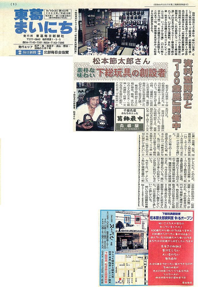 二代目は節太郎の娘が継ぐ予定だったが先に亡くなってしまったため、平成16年11月27日、松本節太郎が101歳で亡くなると共に下総玩具も一代限りで廃絶した。