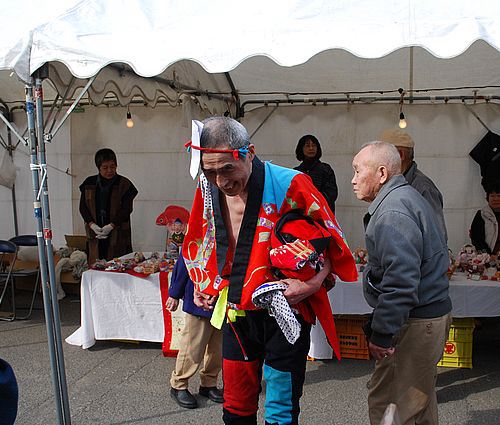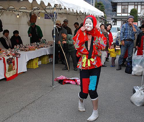 その後、「蚕鈴」さんのインスタグラムに この猫の型が掲載された 使わせていただくことにした 三春張り子の猫の型 「kaikosuzua」より 橋本広司さんはひょっとこ踊りの名人でもあった 下は2009年の中野ひな市の陣屋県庁記念館で 展示販売をしたとき 全国郷土玩具販売テントに現れた橋本広司さん |
