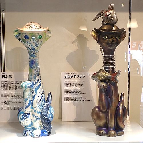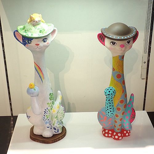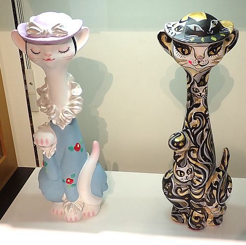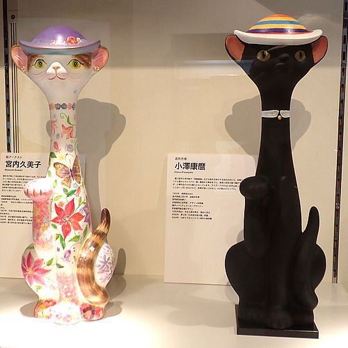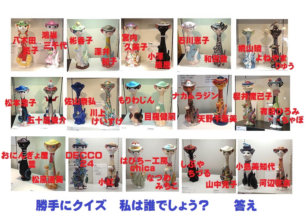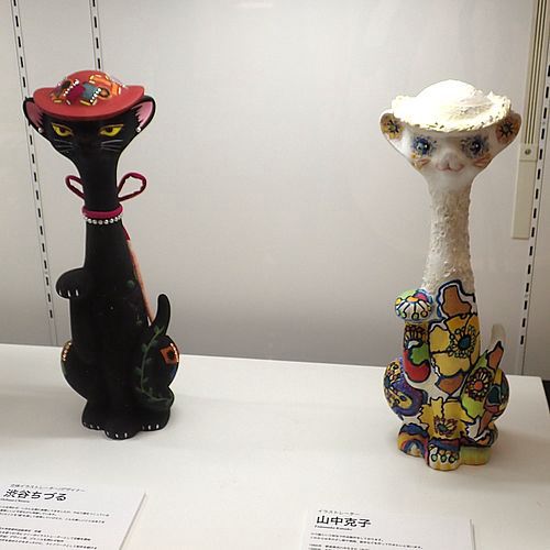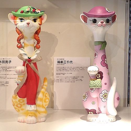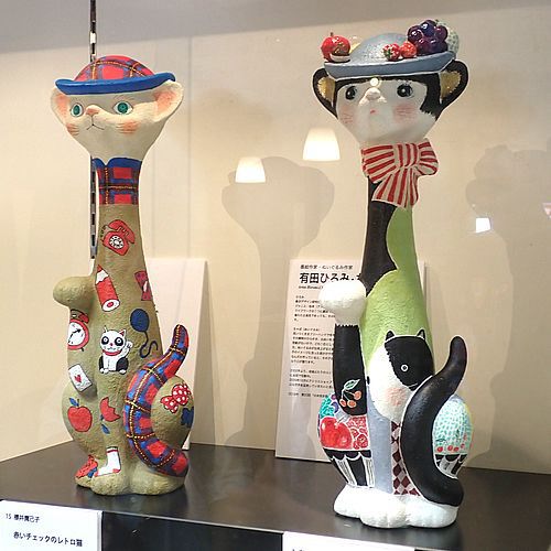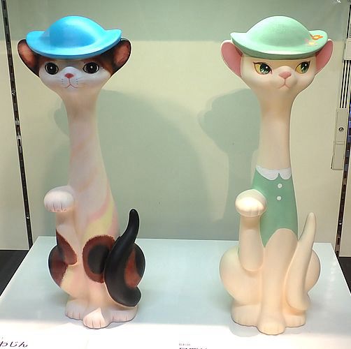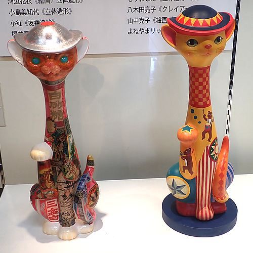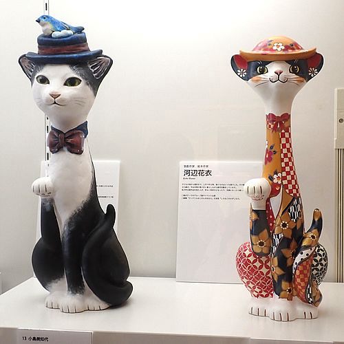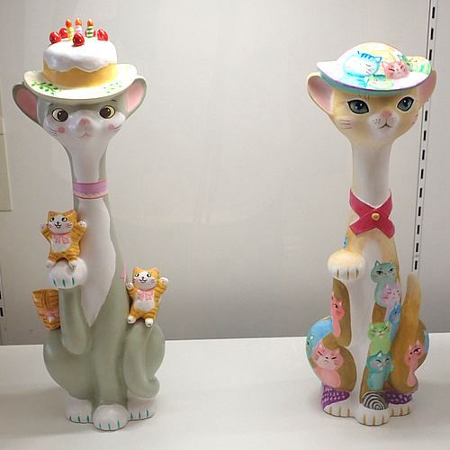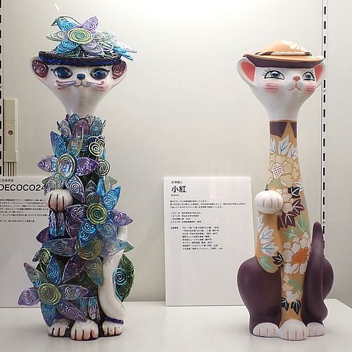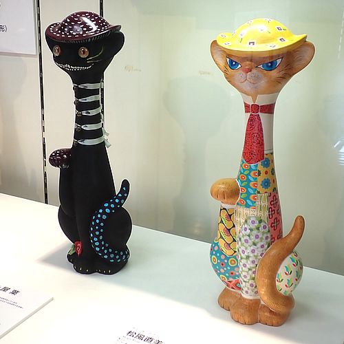 | 「乙女の招猫」 石川恵子(左) 唯一目を閉じたすまし顔 「キャットちゃん」 和田敦(右) これも柄で作者がわかってしまう |