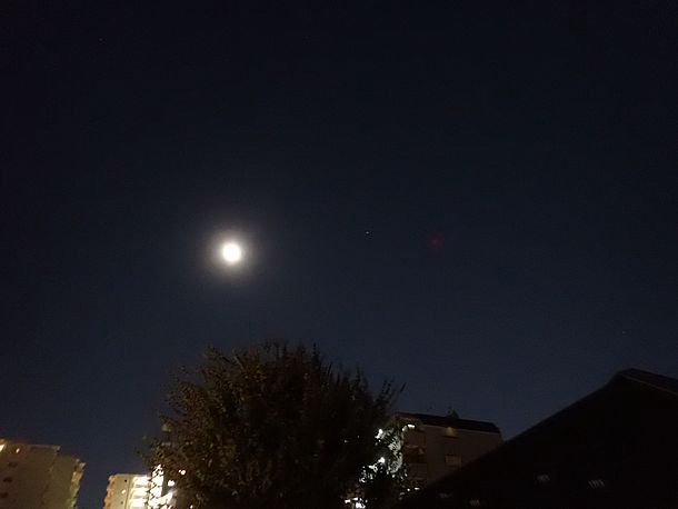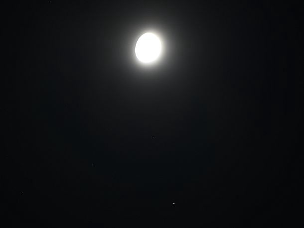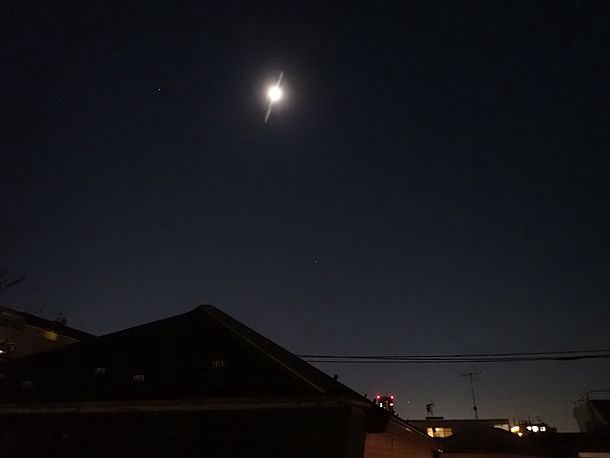 満月に近づいた月齢12.9の月はまぶしく輝く。