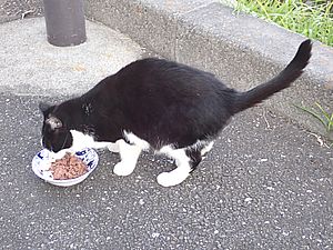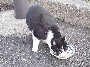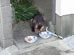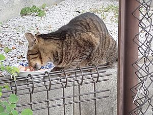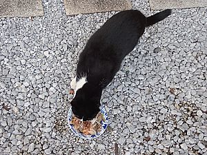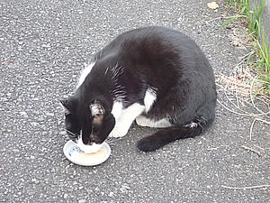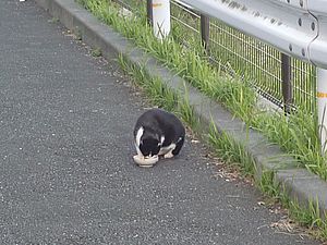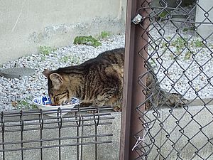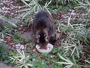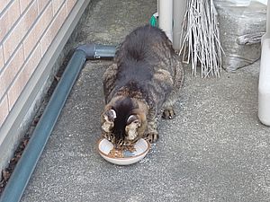 エサを外に持ってくると元祖黒トラはまた食べ始めた。