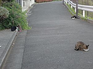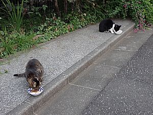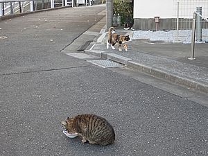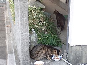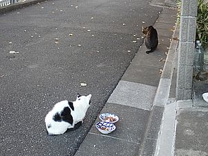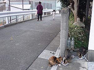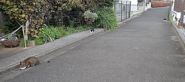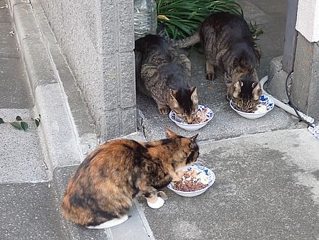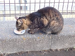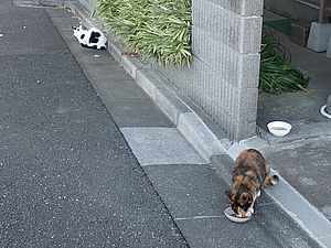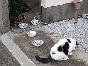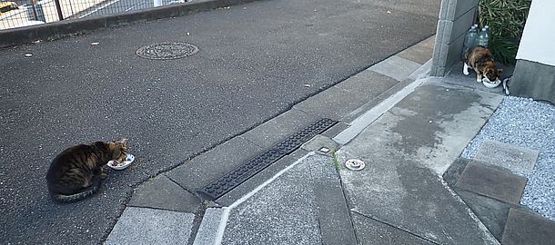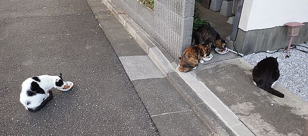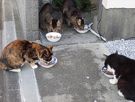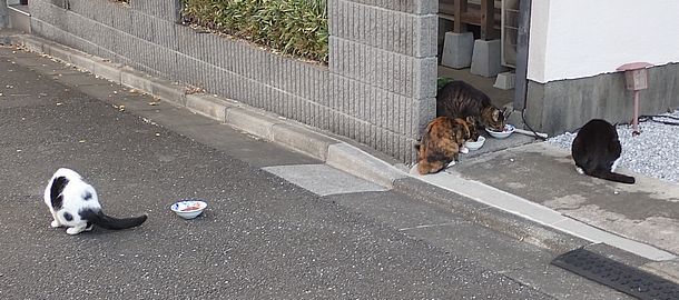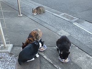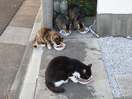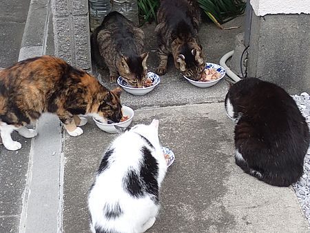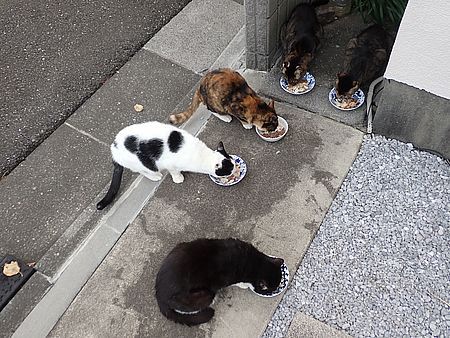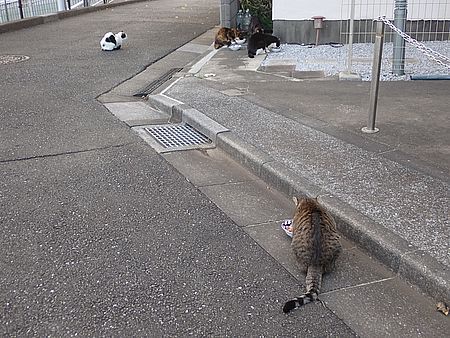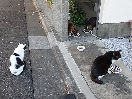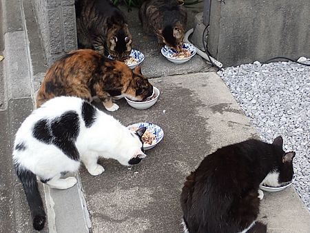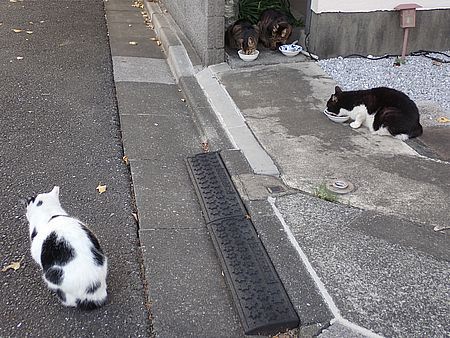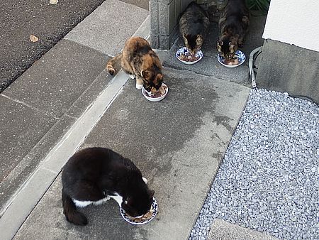 少し遅くなってしまった。猫が待っていた。見知らぬ弟がいるからか猫も警戒気味で数が少なめ。