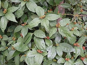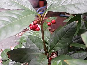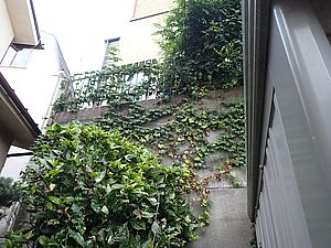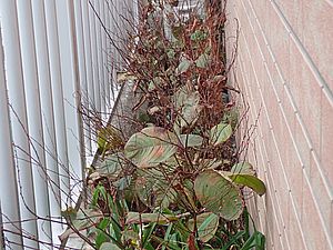 気がつかないうちにカラスウリのような実ができていた。どこから伸びているのか、撤去しなくては。