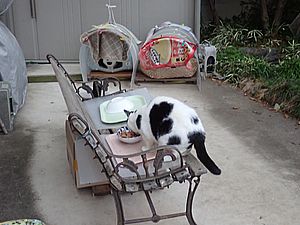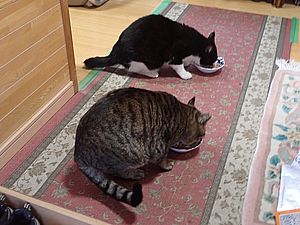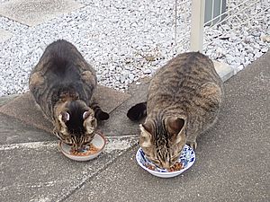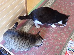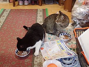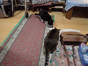 元祖黒トラとマルハチ君はさらに好評カリカリを食べる。