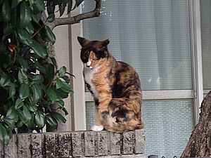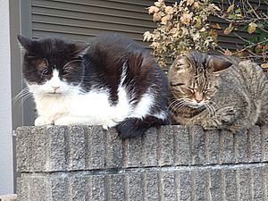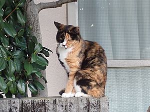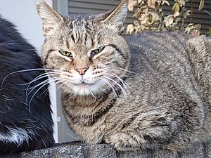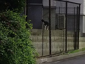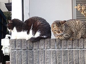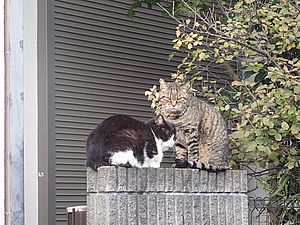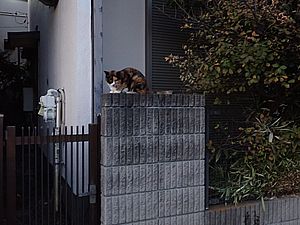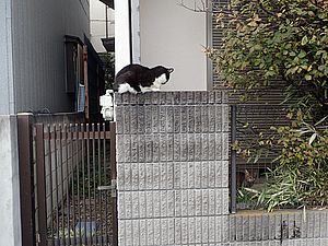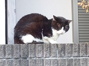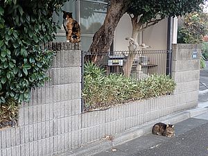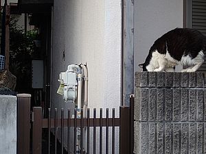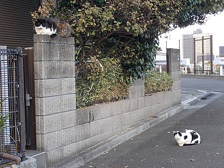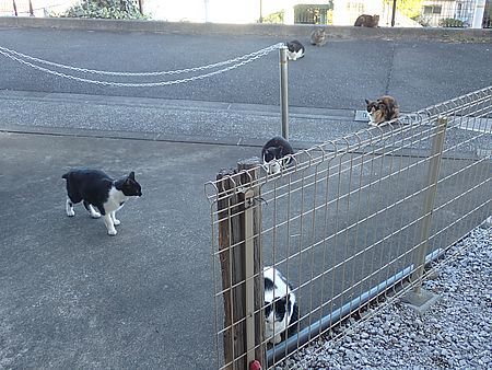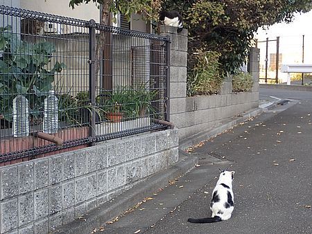 元祖黒トラとマルハチ君が塀の上で待っていた。カウ君もいた。