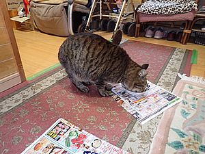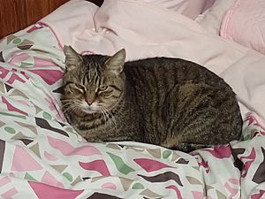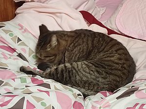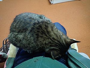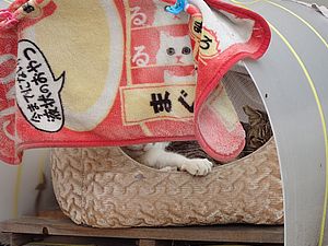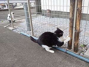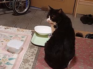 食事タイムの準備をしていると黒トラ1号がのぞきにやってきた。