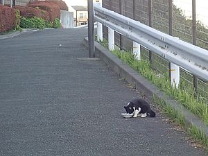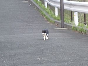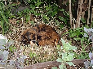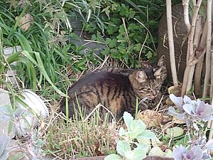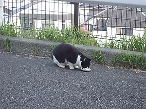 元祖黒トラが植え込みから出てきた。マルハチ君が続いて出てきた。