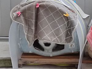 マルハチ君に好評カリカリ投入。黒トラ2号にも投入。