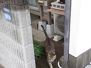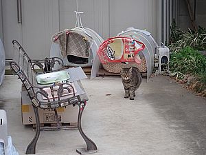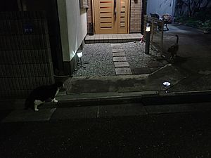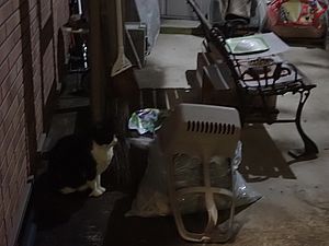 支援物資をもって西日傾く中、ばあちゃんと猫の様子を見に行く。