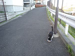 散歩のフレンチブルドックが接近してきた。ふだんワンちゃんは無視なのに2匹とも逃げた。ブルもトラブル防止で散歩経路を変えた。黒トラ2号はそんなことに関係なく食べている。