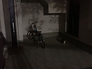 試しのエサを置くと食べていた。元祖黒トラにも玄関内にエサを置く。