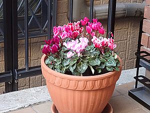 お隣さんもガーデンシクラメンを寄せ植えしていた。